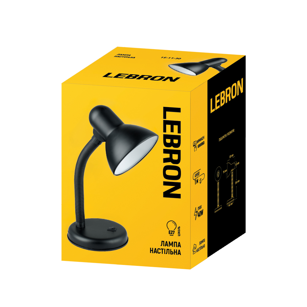 Лампа настільна LEBRON L-TL, E27, 40W, чорна