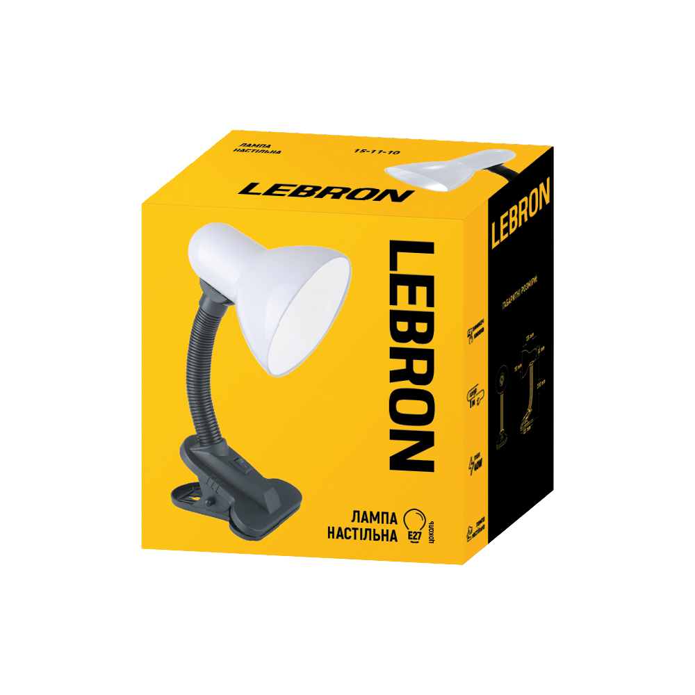 Лампа настільна з кліпсою LEBRON L-TL-Clip, E27, 40W, біла