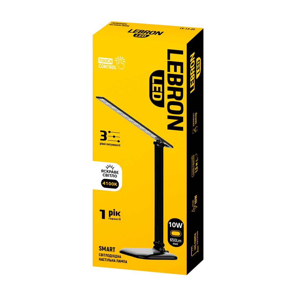 LED лампа настільна LEBRON L-TL-L, 10W, 4100K, 3 рівня по-сті, чорна, з блоком жи-ня