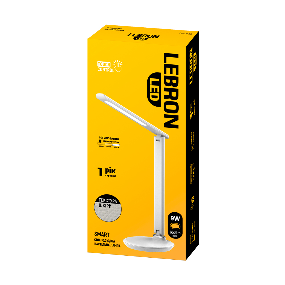 LED лампа настільна LEBRON L-TL-L, 9W, 3000K, 4100K, 6500K, біла "шкіра", з блоком жи-ня