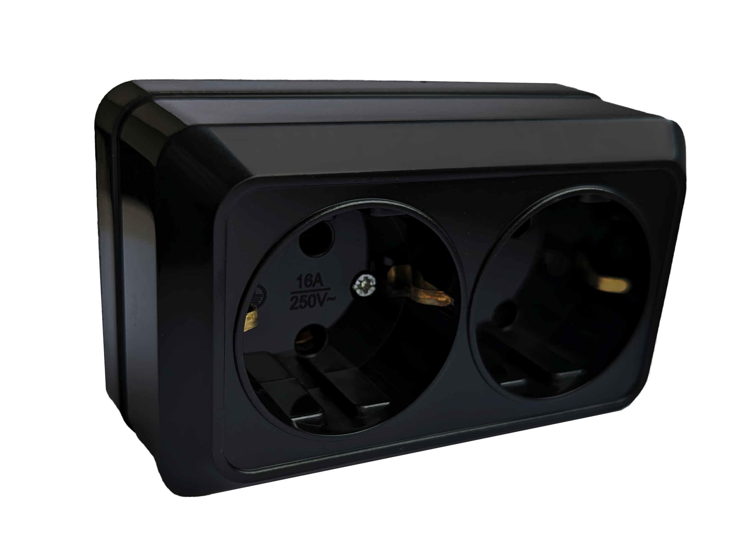 Розетка 2 гнізда, з/з, 16А, "Julia", чорна
